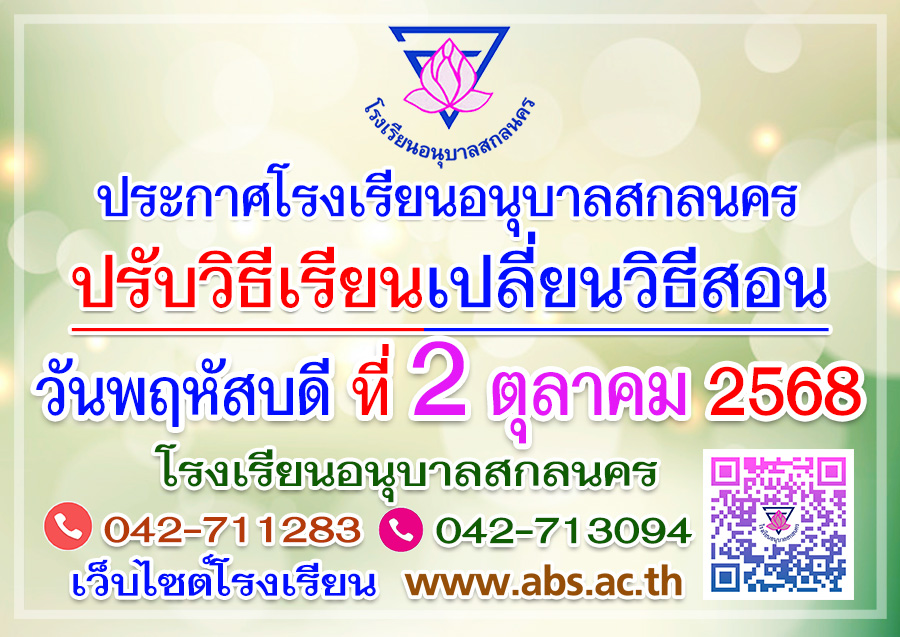ประกาศโรงเรียนอนุบาลสกลนคร เรื่อง ปรับวิธีเรียนเปลี่ยนวิธีสอน ในวันพฤหัสบดีที่ 2 ตุลาคม 2568