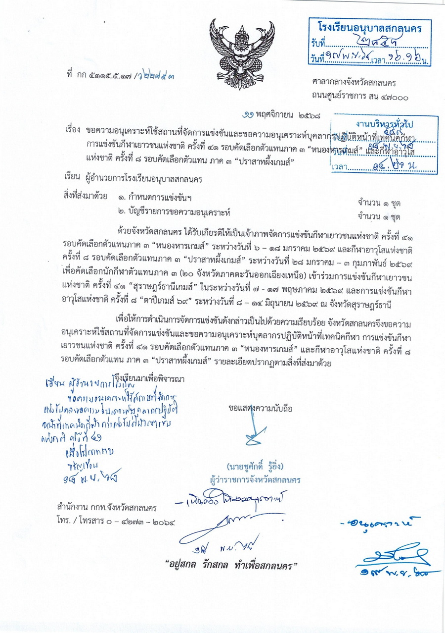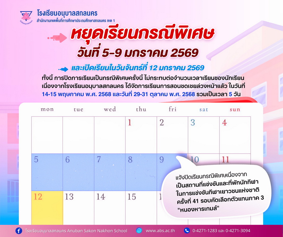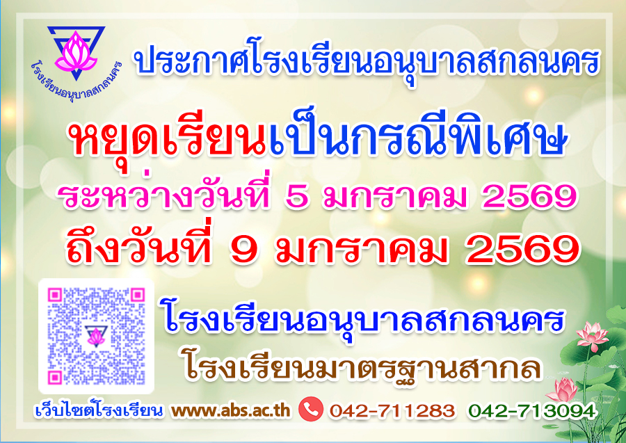 ประกาศโรงเรียนอนุบาลสกลนคร หยุดเรียนเป็นกรณีพิเศษ