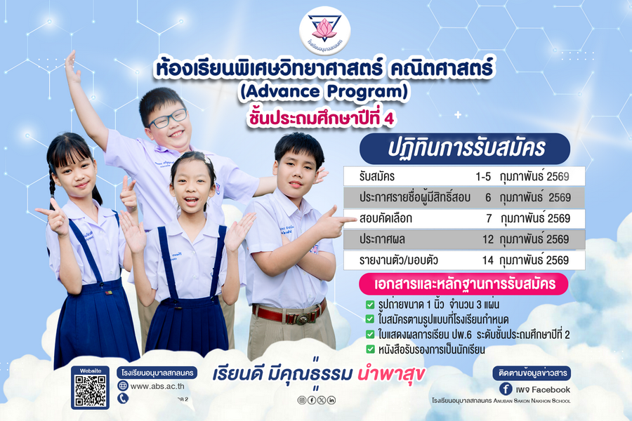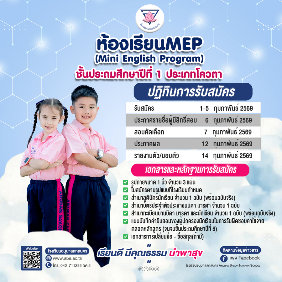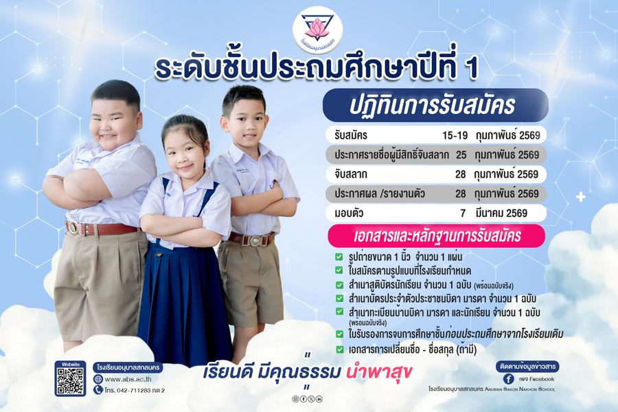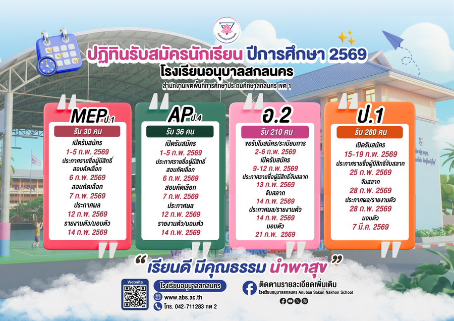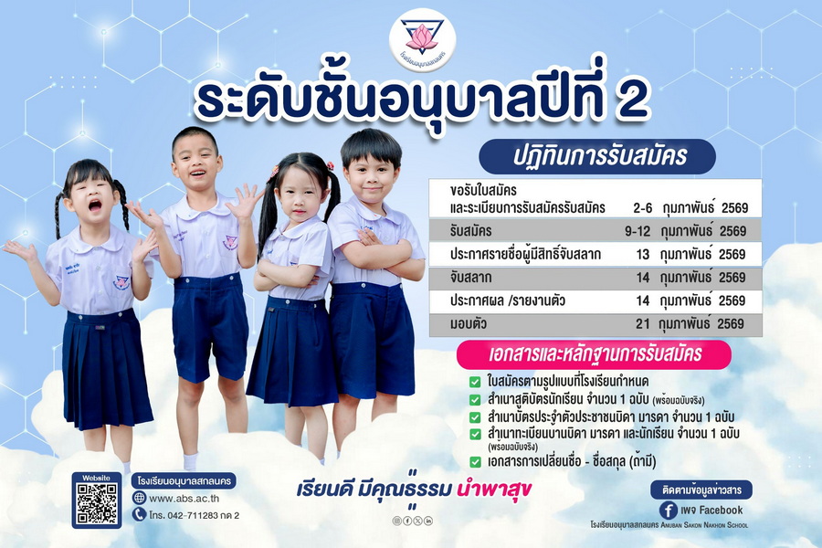 ประกาศรับสมัครนักเรียนโรงเรียนอนุบาลสกลนคร ปีการศึกษา 2569