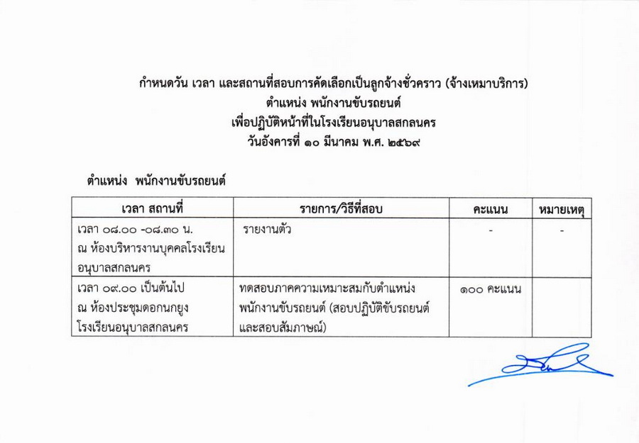 ประกาศ รายชื่อผู้มีสิทธิ์เข้ารับการคัดเลือกเป็นลูกจ้างชั่วคราว (จ้างเหมาบริการ) ในโรงเรียนอนุบาลสกลนคร