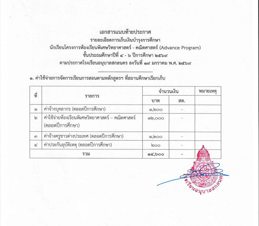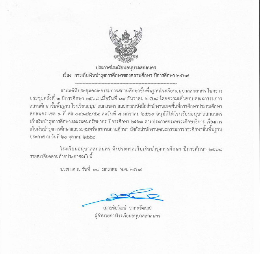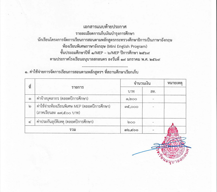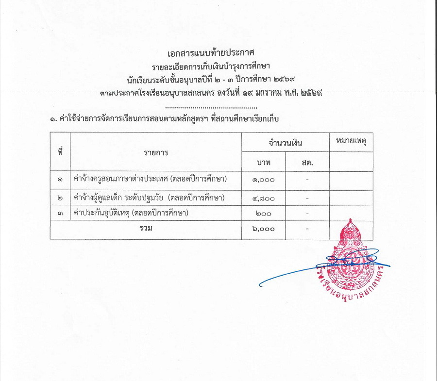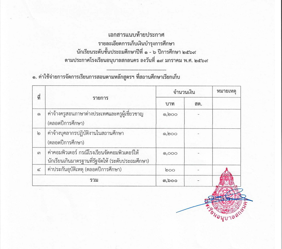 การเก็บเงินบำรุงการศึกษา ในปีการศึกษา 2569